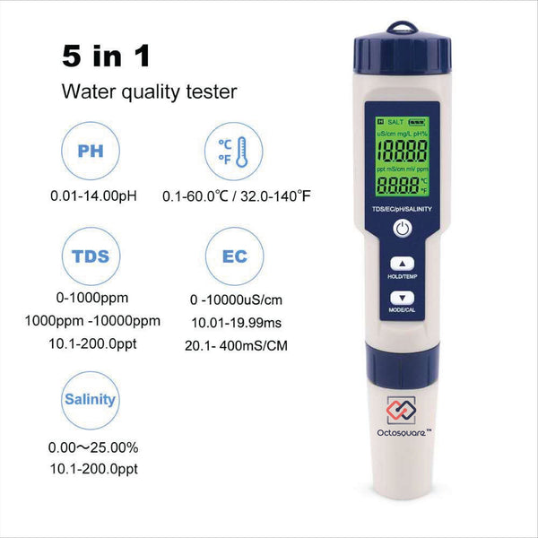 5-in-1 Multiparameter, PH/TDS/EC/Salinity/ Temp. Meter,Water Quality Analyzer