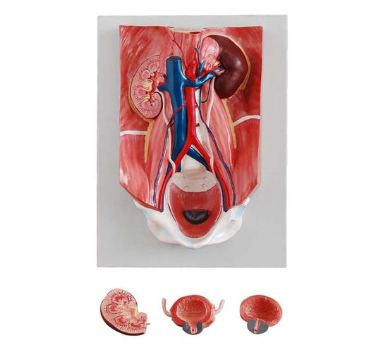 The model shows the structures of retroperitoneal cavity, pelvis with bones and muscles, inferior vena cava, aorta with its branches, upper urinary tract, kidney with adrenal gland, ureter, bladder, etc. Dissectible into 4 parts.Sale price Rs.9,300.00Regular price Rs.17,300.00