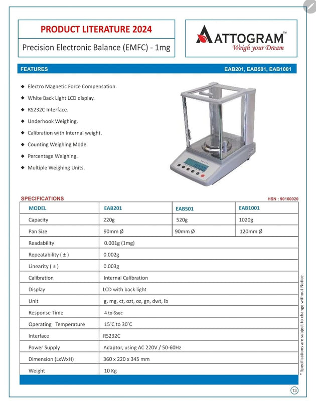 Analytical Balance 1mg/220g capacity,EMFC based ,High Precision