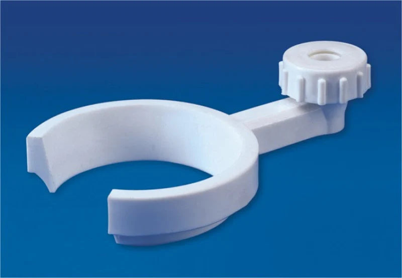 This non-corrosive seperatory funnel holder, moulded in polypropylene, has a front opening which provides clear view of the solution and allows unobstructed placement of separatory funnels. Two tapered wedges are provided to ensure firm grip on rods having dia 1/2" or 3/8".