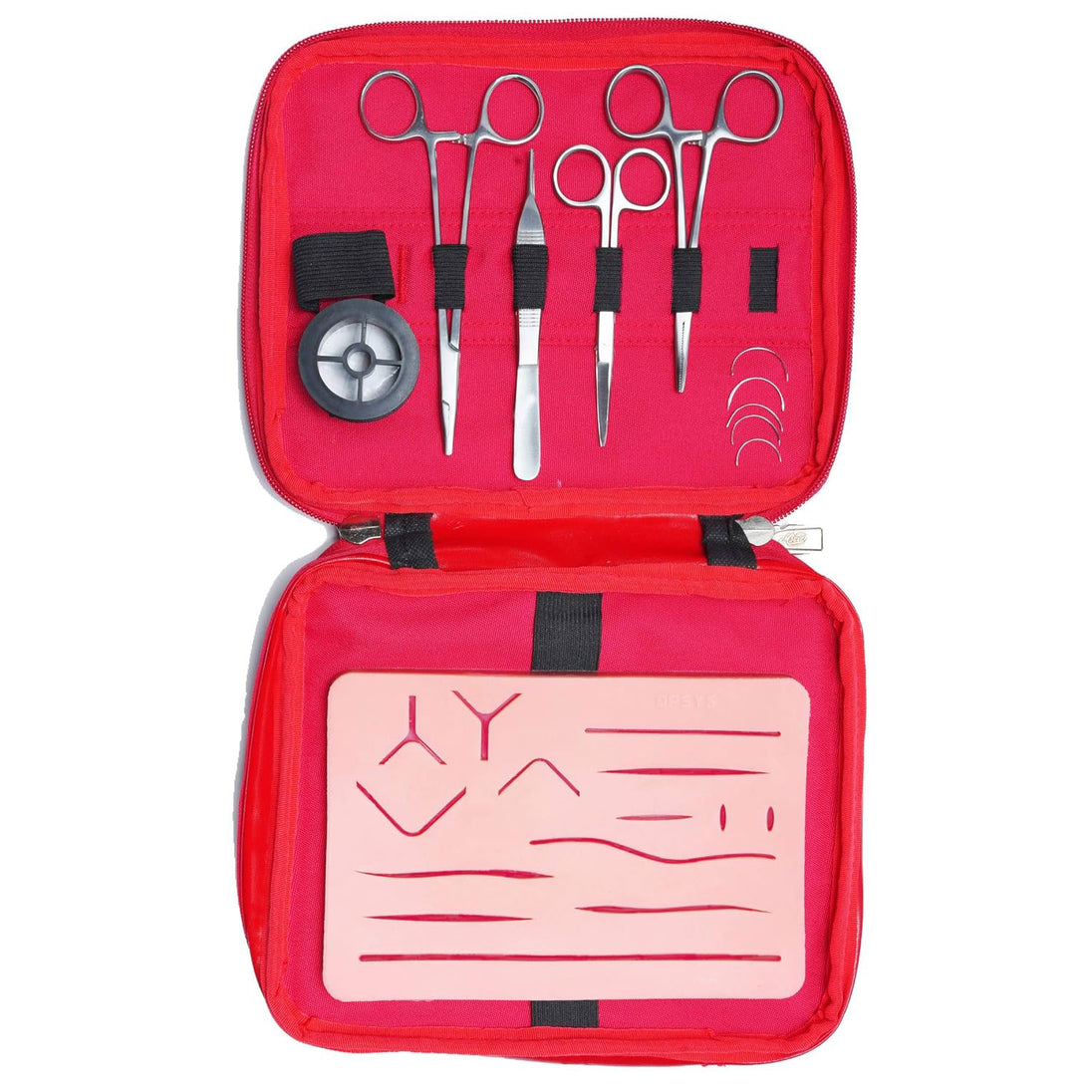 - The complete suture practice kit includes all the essential suture tools in one package, such as a Hegar needle holder, Adson forceps, suture scissors, scalpel blades (3-pack), and suture thread (5 or more packs).