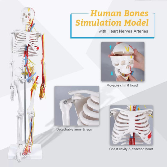 Human Skeleton Model With Nerves & Blood Vessels (85CM Tall)