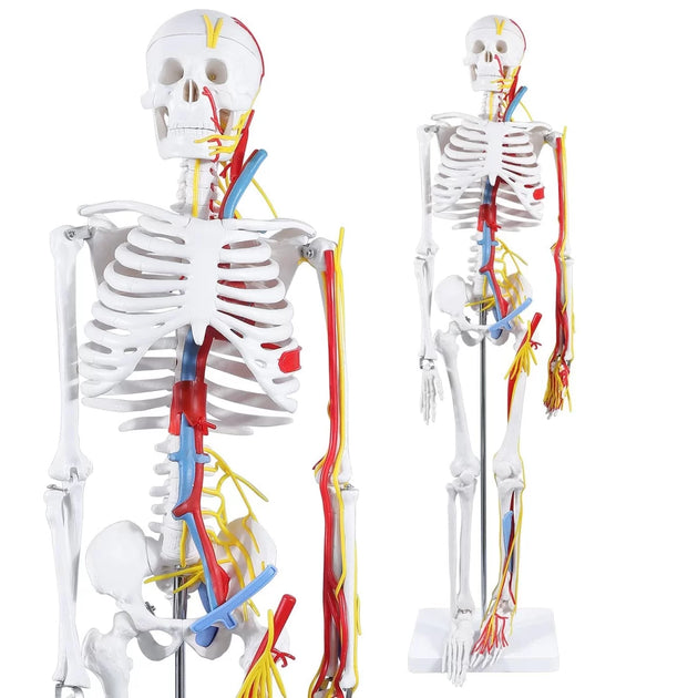 Human Skeleton Model With Nerves & Blood Vessels (85CM Tall)