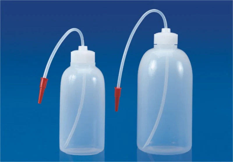 ESAW Wash Bottles are made of Low Density Polyethylene which gives these bottles a translucent & unbreakable character, Solutions can be poured easily by squeezing the bottle lightly. The cap is fitted with a flexible polyethylene delivery tube which can be aimed wherever required