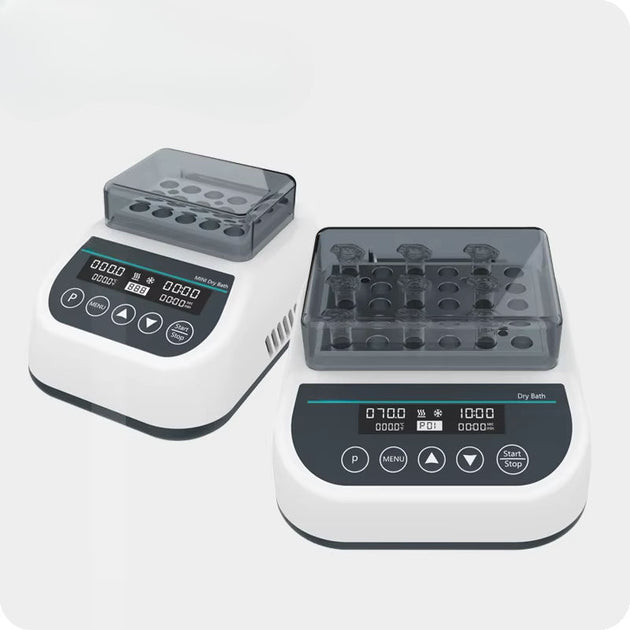 Our dry block heaters offer advanced microprocessor-controlled systems with digital temperature display, ensuring consistent heating performance across a wide temperature range. With interchangeable aluminum blocks available for multiple tube sizes — including microcentrifuge tubes, PCR tubes, vials, and test tubes — these dry bath incubators provide flexibility for diverse lab workflows.