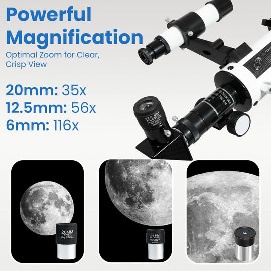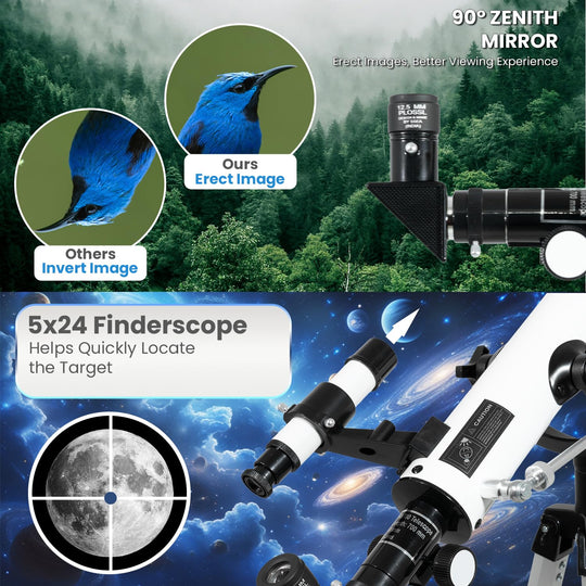 Astronomical Telescope 90X with Tripod & Finder Scope| Perfect Kids Gift for Moon, Planets Comprehensive 360° Viewing, Optics, Simple Assembly