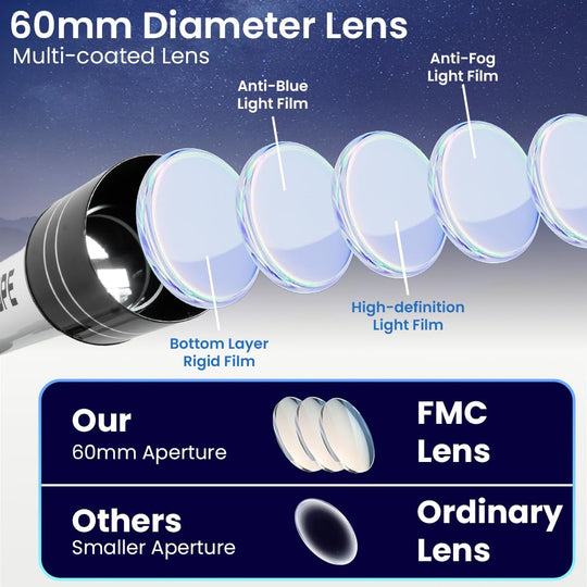 Nebulla Refractor Telescope with 175x Ultra Zoom,Fully Coated Glass Optics, Alt-Az Mount,with 3 Multi Power Eye Piece