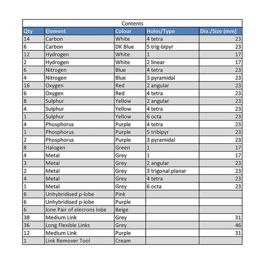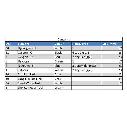 The 48 atom pieces, 62 links set provides students from grade 8 to graduation level with the help of colour coded bonds to help visualize the structure of compounds. Labmart molecular model is a teacher's set...Sale price Rs.950.00Regular price Rs.1,800.00 -