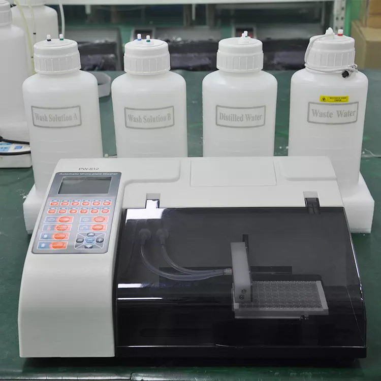 ELISA Washer with <0.7 μl/Well Channel and CV < 1.5 % Dispensing Uniformity, EW-812, ensures precise and uniform washing of microplates. Its high-accuracy dispensing system reduces reagent waste and minimizes variability between wells. The low residual volume and consistent flow rate support sensitive immunoassays, improving overall assay reliability.