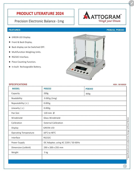 → Aluminum alloy base→ Date & Time Display→ Glass WIndshield.→ Front & Back Display.→ Multifunction Weighing Units→ In built rechargeable battery→ RS232C Interface→ Weighing, Counting, Percentage, Overload Warning.→ Dynamic weighing function. MODEL PEB237 PEB346 Capacity 220g...Sale price Rs.14,999.00Regular price Rs.26,000.00 -