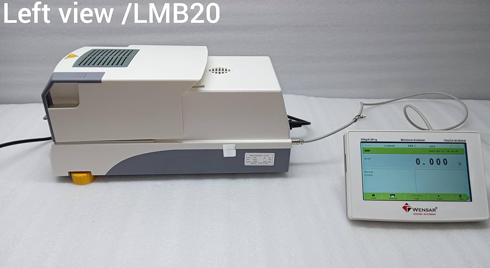 The Wensar LMB20 is a high-capacity halogen moisture analyzer capable of handling samples up to 210g with a readability of 0.001g (1mg). It is primarily used for rapid moisture content determination in grains and other industrial samples