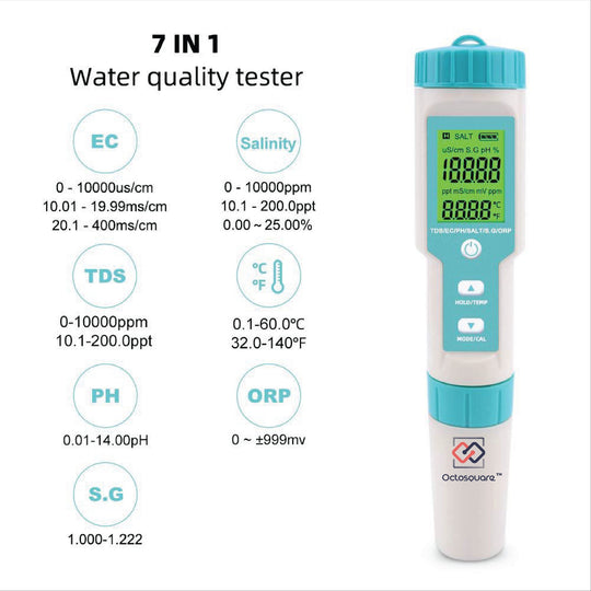7-in-1 Multiparameter, PH/TDS/EC/Salinity/ Temp/ORP/SG. Meter,Water Quality Analyzer