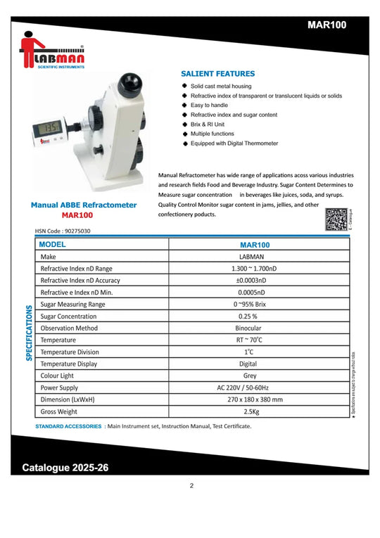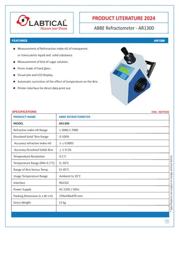 Refractive Index nD Range 1.300 ~ 1.700nD Solid cast metal housing Refractive index of transparent or translucent liquids or solids\ Easy to handle. Refractive index and sugar content Brix & RI Unit Multiple functions Equipped with Digital...Sale price Rs.22,000.00Regular price Rs.40,000.00 -