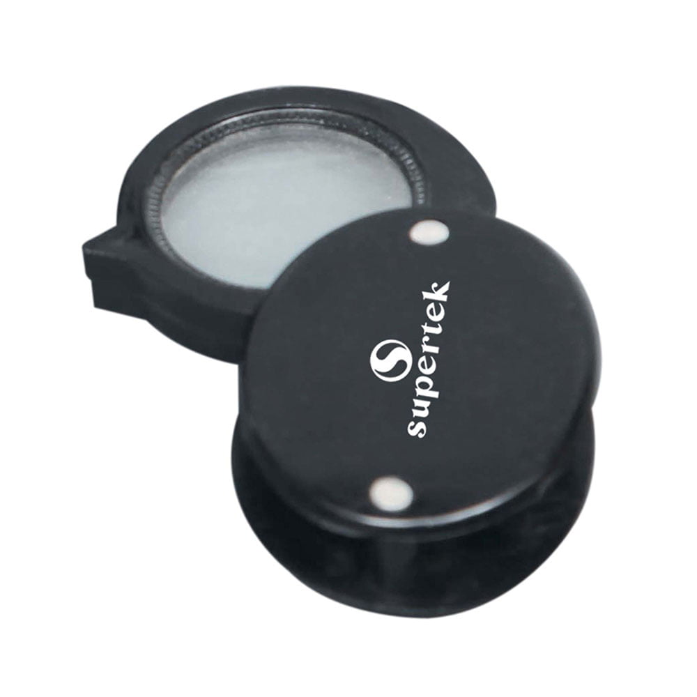 Pocket type magnifier mounted in a single body with a metal cover which doubles as handle fitted with a single lens of diam. 18 mm with a magnification of X 10.