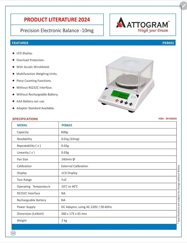 Precision Balance PEB1066 - 10mg/1000g