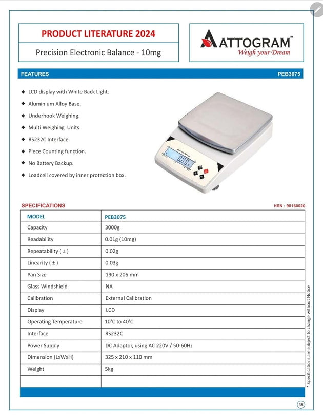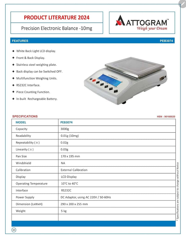 Precision Balance 10mg/3000g with LCD display PEB3074