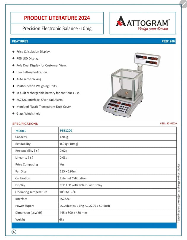 Precision Balance with price calculation display - 10mg/1200g
