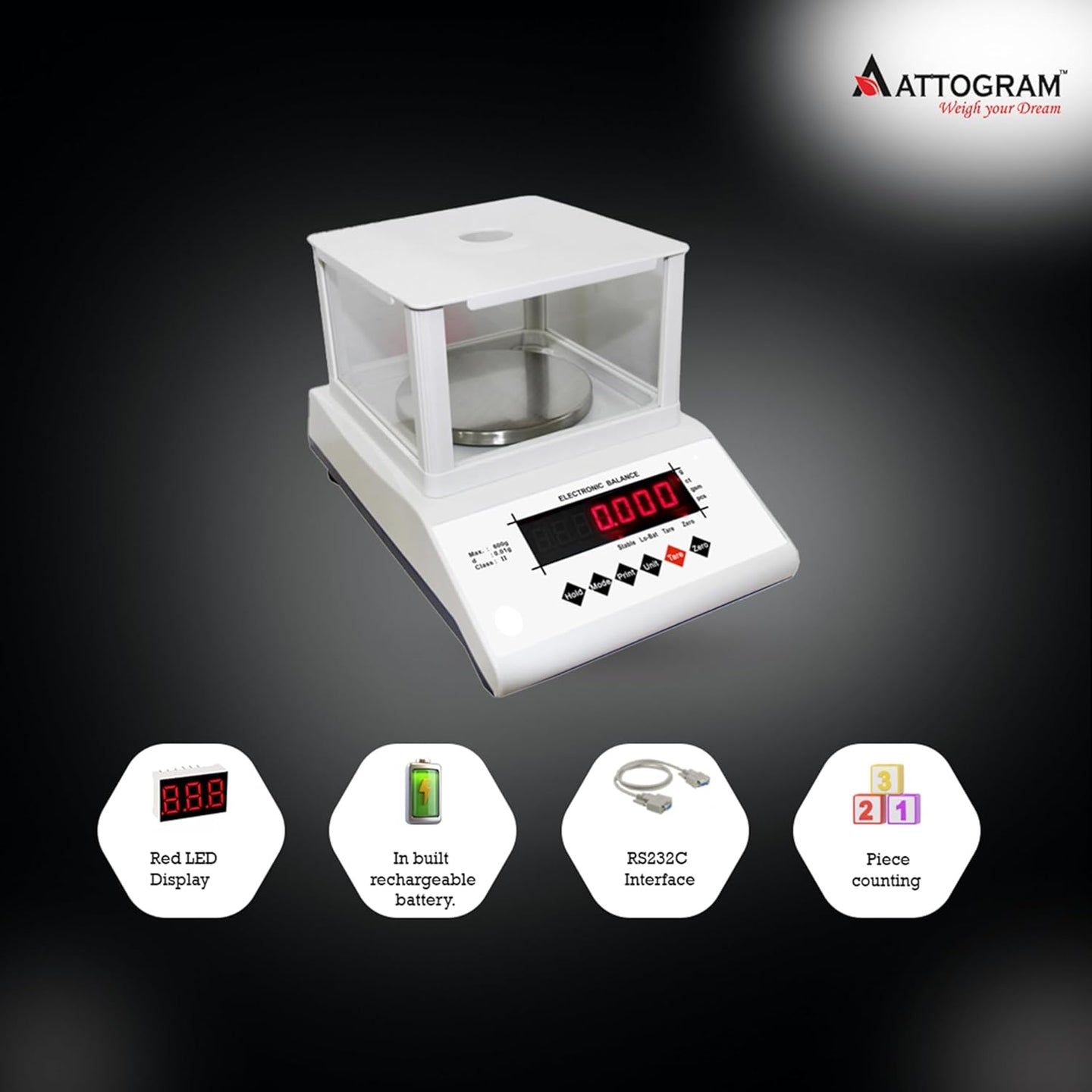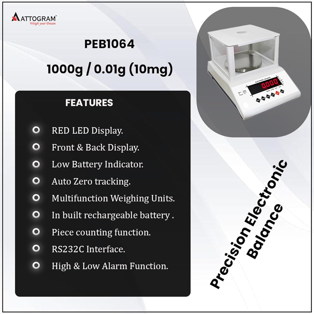 Precision Analytical Balance 1mg/200g,front & back display