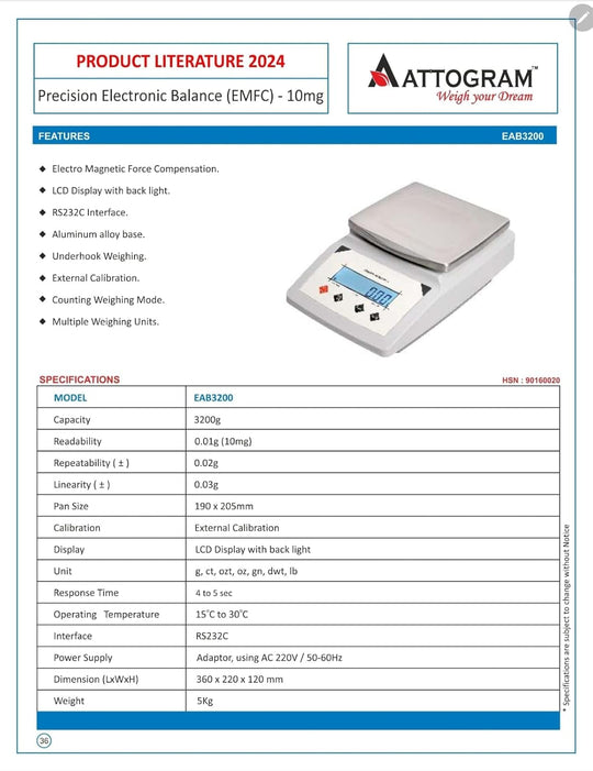 Electronic Balance -EMFC - 3200g/10mg Electro Magnetic Force Compensation LCD display with Back light RS232C Interface Aluminum alloy base Underhook Weighing External Calibration Counting Weighing Mode Piece CountingSale price Rs.24,999.00Regular price Rs.44,000.00 -