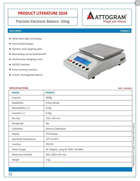 Precision Balance 10mg/3000g with LCD display PEB3074