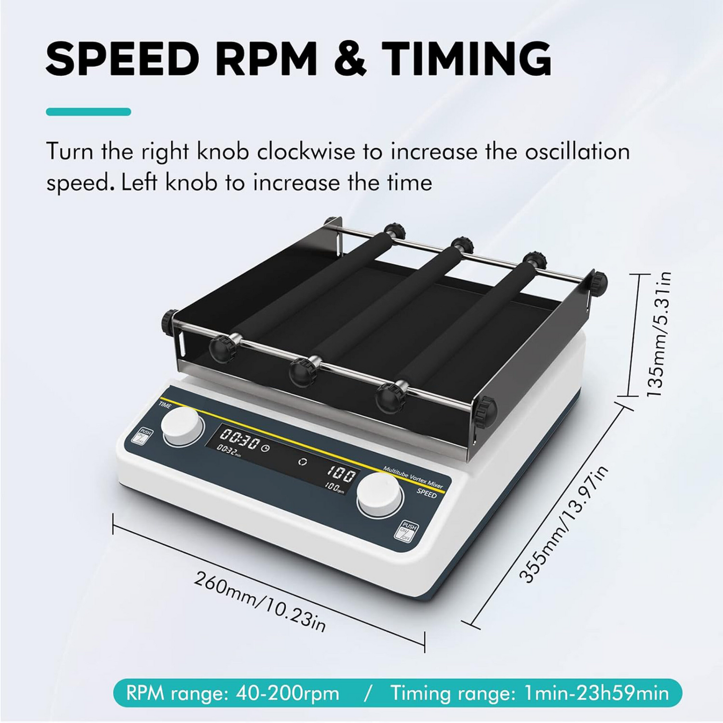 - DIGITAL CONTROL: LCD display with precise speed control from 40-200 rpm and timer functionality for accurate experimental conditions