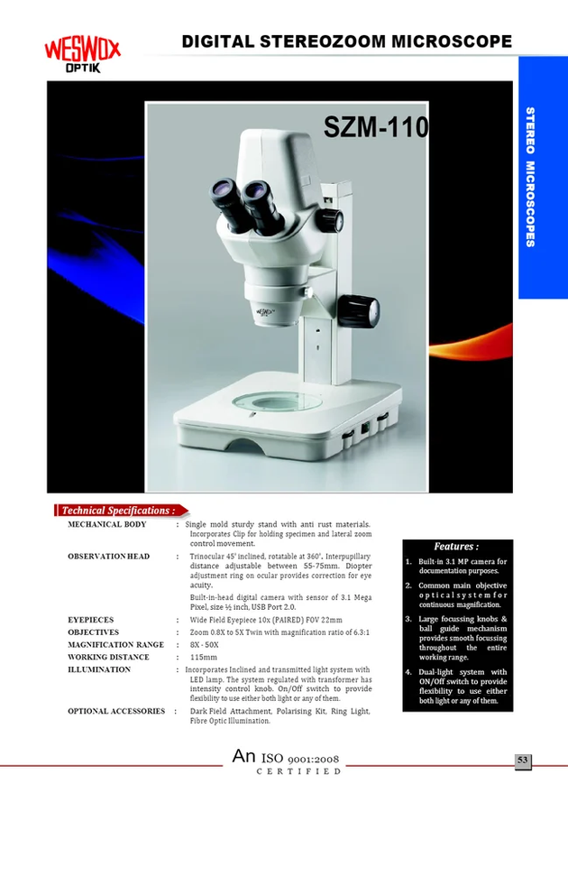 Built with high-quality optics and anti-fungal coated lenses, the stereo zoom microscope provides sharp resolution, accurate color reproduction, and long-term reliability. Adjustable LED incident and transmitted illumination ensures optimal lighting for opaque and transparent samples alike. Its rugged metal body, ergonomic design, and stable base make it suitable for both classroom and industrial environments.