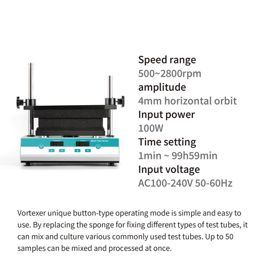 SPEED RANGE: Variable speed control from 500 to 3000 RPM with digital display for precise adjustment and monitoring CAPACITY: Accommodates multiple tube sizes - 50ml×15, 15ml×50, 2ml×50, 0.5ml×50 tubes simultaneously for efficient sample processing MOTOR TECHNOLOGY:...Sale price Rs.40,000.00Regular price Rs.80,000.00 -