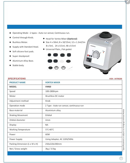 VERSATILE OPERATION: Features both touch and continuous operation modes with adjustable speed control from 200-3000 RPM for precise mixing needs MULTIPLE ATTACHMENTS: Comes with various head attachments to accommodate different tube sizes and containers for laboratory...Sale price Rs.14,000.00Regular price Rs.20,000.00 -