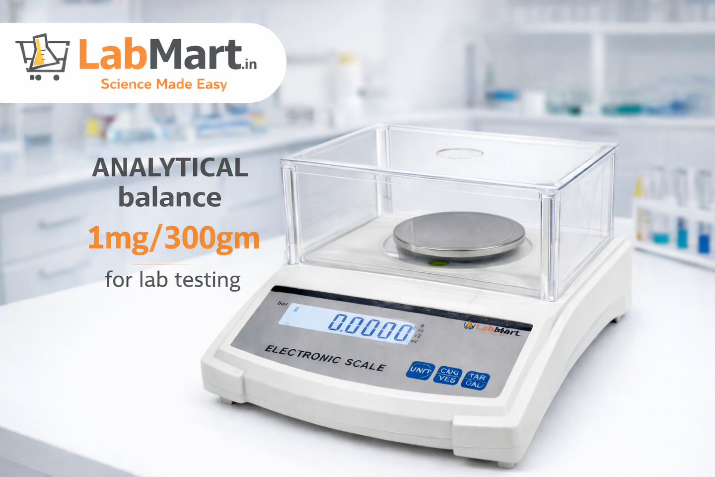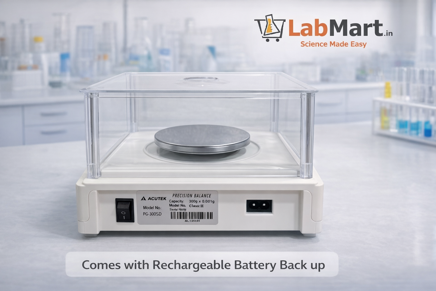 Precision Balance 0.001gX300gm capacity,1mg Precision, with Glass Draft Shield, Piece Counting, Tare Function, Calibration Certificate & 200g Test Weight | RS232 Port |