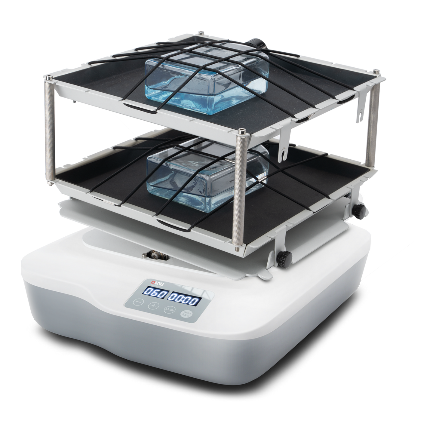 The SK-R1807-S is a flexible Laboratory Rocking Shaker that mixes samples in a lab quickly and gently. This Digital Rocking Shaker Machine from the Rocking Shakers series is a solid choice. It has a smooth see-saw motion that makes it great for staining, de-staining, gel processing, hybridization, and molecular biology tasks.